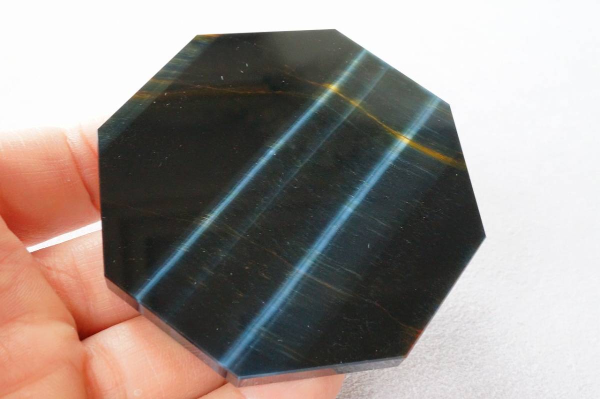- 希少!30年前の原石を加工彫刻!極上天然紺虎目石(タイガーアイ)彫刻研磨飾り台79g①
