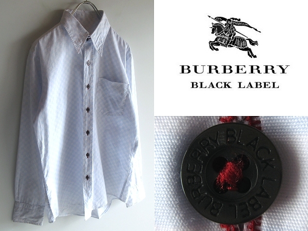 > 希少 BURBERRY BLACK LABEL バーバリーブラックレーベル 市松柄 チェック コットン ドレスシャツ 2 ライトブルー ホワイト ネコポス対応
