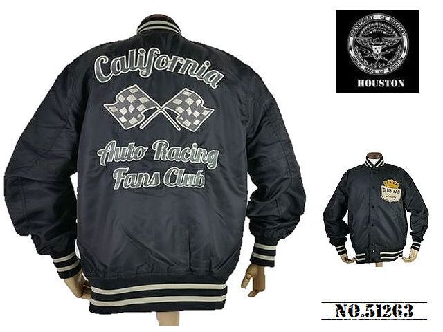 > 【送料無料 29%OFF】HOUSTON ヒューストン ヘビーナイロン アワードジャケット (中綿無し) 「FLAG」 NO.51263 BLACK_Mサイズ