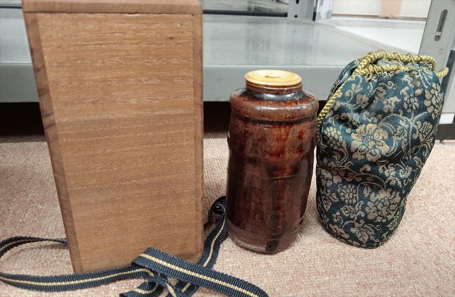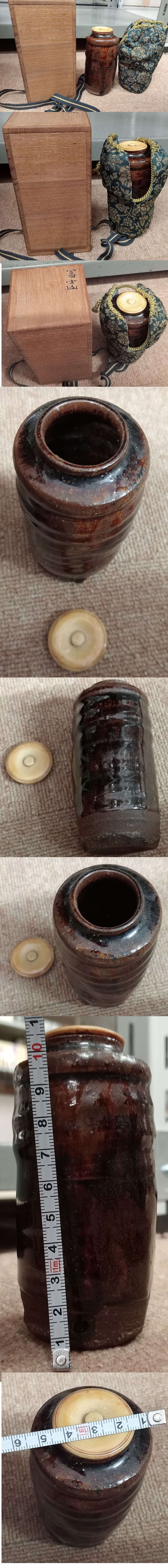 桃山時代 瀬戸 古瀬戸 茶入 渋紙手 黒田 陶々庵 鑑定箱 共袋 古裂