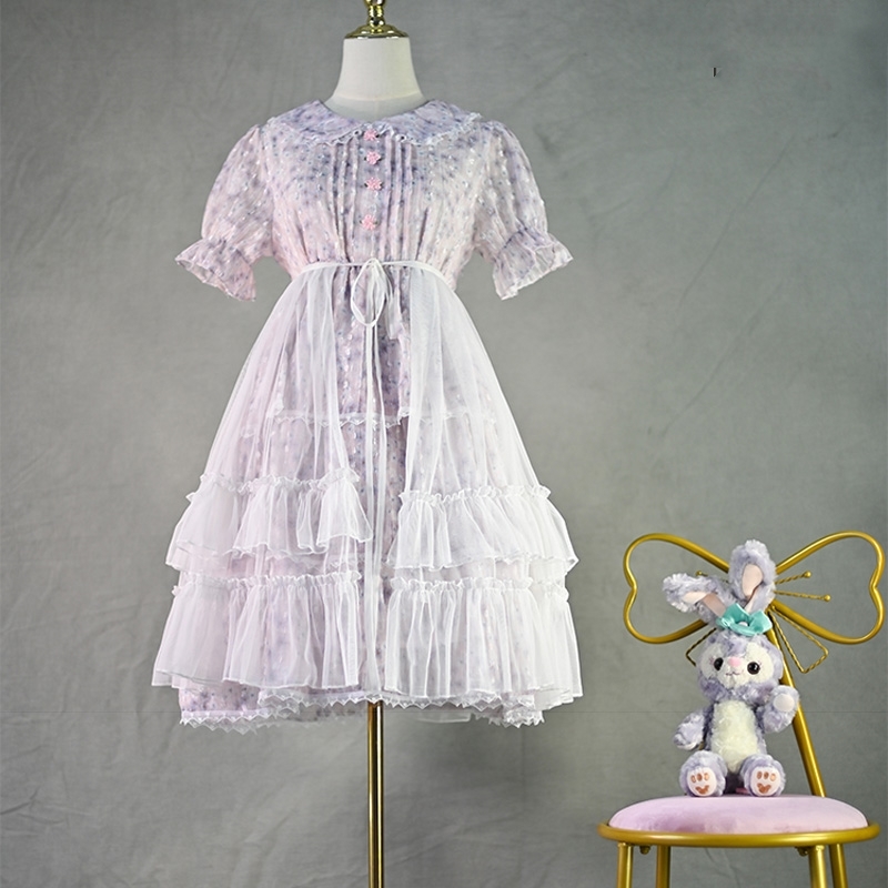 - ロリータ オーバースカート スカートカバー エプロンスカート 丈63cm チュールスカート ボリューム ゴージャス 着回し 2層フリル 高品質