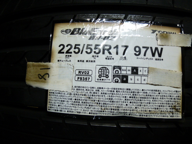 - 【31】4本セット!新品格安 225/55R17 ヨコハマタイヤ RV02 2018年製造4本セット!