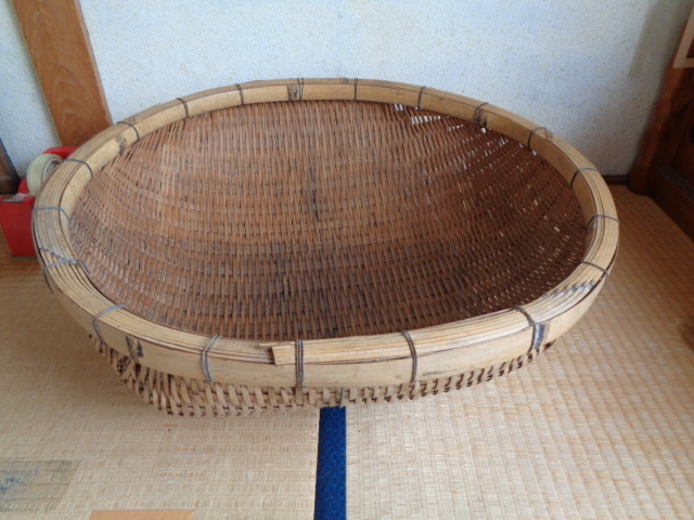 - 旧家蔵出し 竹ザル-円形大型ザル/竹編み円形ザル/野菜容れ・野菜カゴ/古民具・古道具/農家使用・農作物 竹カゴ/大型カゴ・大型ザル/
