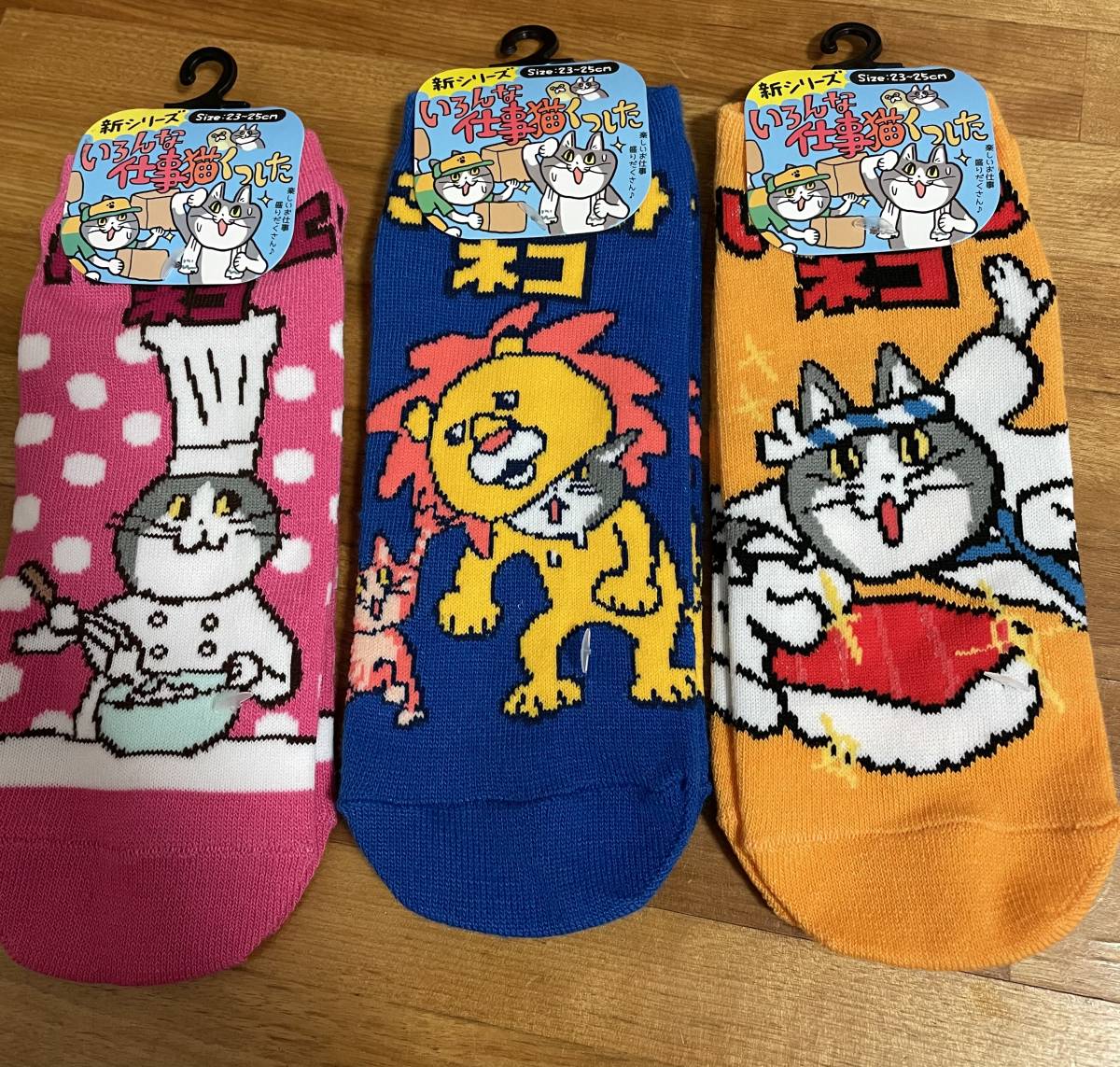 - 送料込☆ 仕事猫 靴下 3足セット 23~25cm 着ぐるみ、パティシエ、板前