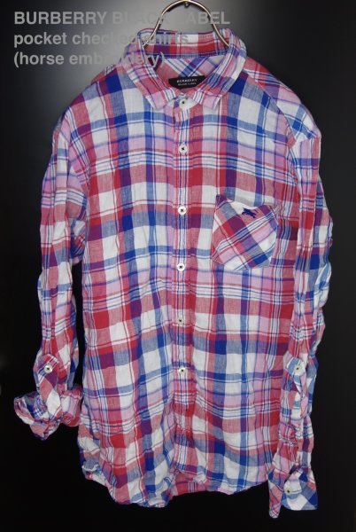 - TK 新品近 『素敵なリネン素材◎』 BURBERRY BLACK LABEL ホース刺繍 チェックシャツ 長袖 2 バーバリー