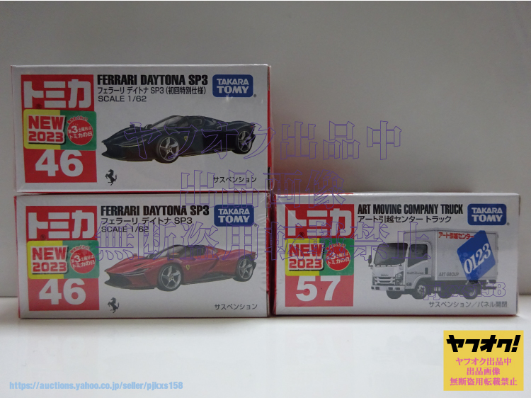 > トミカ No.46 フェラーリ デイトナ SP3 初回特別仕様 通常 & No.57 アート引越センター トラック 2023年4月新車3台セット