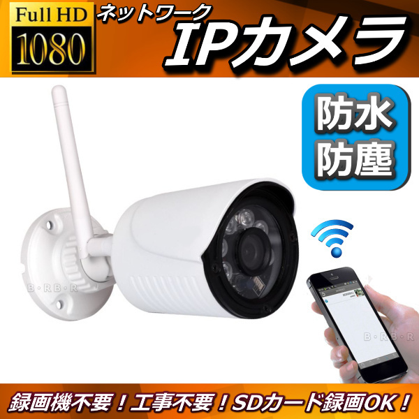 > 防水 防塵型 高画質HD 200万画素 IPカメラ スマホで簡単 wi-fi接続 遠隔操作 設定不要 動体検知機能付 ネットワークカメラ 新品/赤外線LED