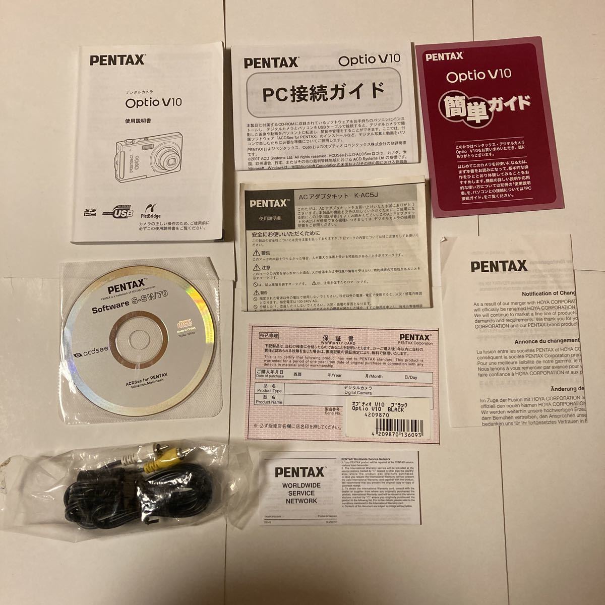 - デジタルカメラ PENTAX Optio V10 説明書 ソフトウェア AVケーブル PC接続ガイドなど