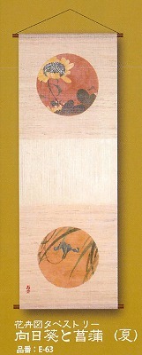 - 伊藤若冲 天井画タペストリー 向日葵と菖蒲 夏 おしゃれ 万葉舎 京都 和柄 夏 手織り透かし織麻 送料無料