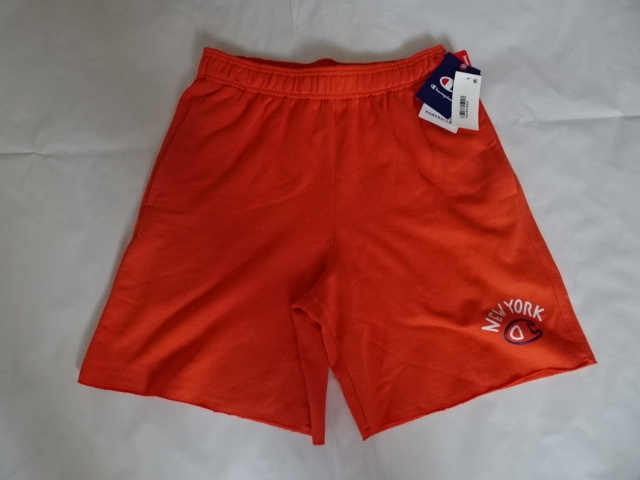 - USA購入 人気スウェットブランド チャンピオン【Champion】シンプル【NEWYORK】ロゴプリント入り スウェットショートパンツUS M オレンジ