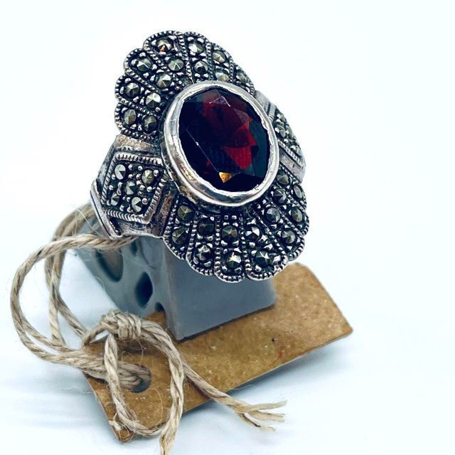 > シルバー925刻印 天然石リング ガーネット 11号 指輪 レディース 希少 1点もの アンティークリング ハンドメイド ヴィンテージ