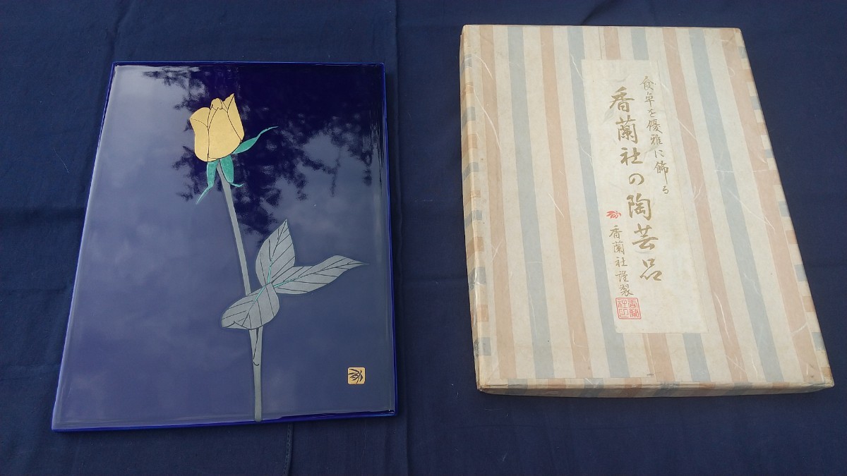 - 香蘭社謹製 瑠璃釉薔薇文陶板 紙箱 保管品 昭和中頃
