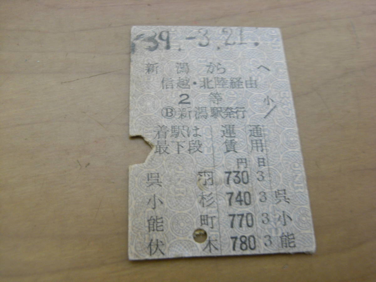 - 信越本線 新潟から伏木 信越・北陸経由 2等 昭和39年3月21日 新潟駅発行
