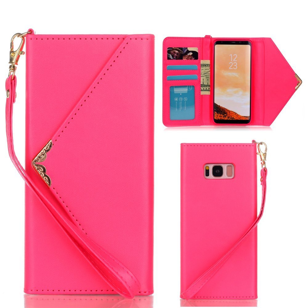 - galaxy s8 レザーケース ギャラクシー s8 ケース galaxy s8 ケース SC-02J/SCV36 手帳型 ストラップ付 カード収納 x2