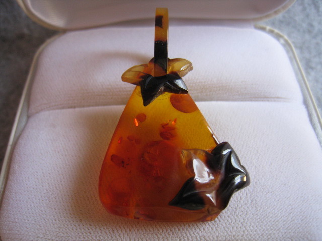 - [SAMU]素敵!!天然べっ甲彫刻、天然琥珀 ペンダント★美品!