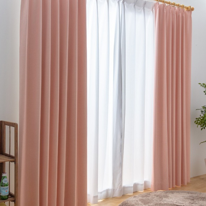 - カーテン 幅150cm×丈235cm2枚 ピンク 完全遮光 遮光1級 省エネ 遮音 遮熱 断熱 保温 日本製 形状記憶加工付 246サイズ展開