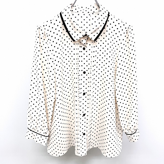 > ミッシュマッシュ MISCH MASCH ブラウス シャツ ドット柄 水玉 7分袖 ポリ100% 38 ライトベージュ系×ブラック ベージュ系 レディース