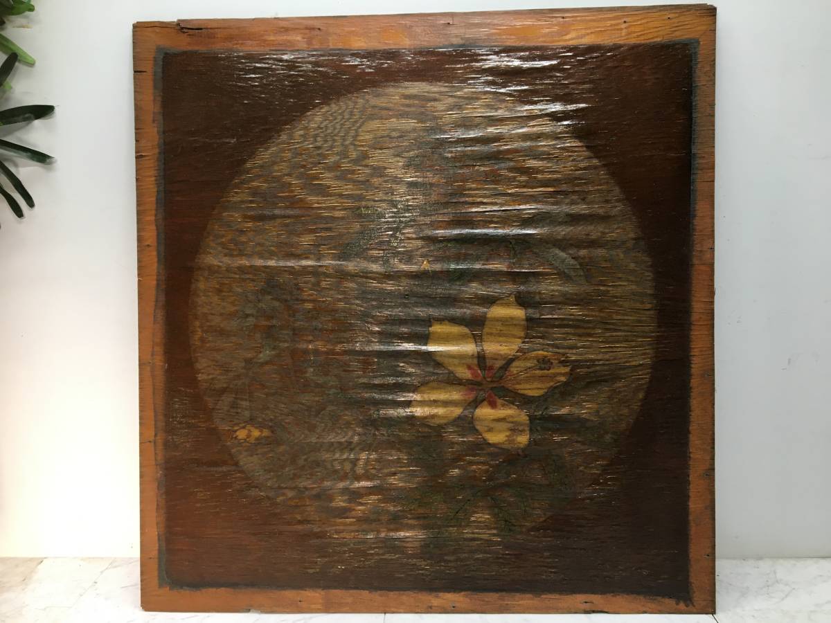 - 希少 3 ★ キング・オブ・銭湯「大黒湯」 天井絵 /天井画 黄色い花 花図 珍品 骨董 アンティーク