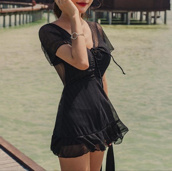 - ★★★大反響の予感! レディース 水着 ワンピース ミニスカート Vネック メッシュ d11