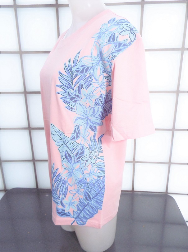 > ティモシー 椰子とハイビスカス ピンク LLサイズ 天竺 綿100% 半袖Tシャツ 新品 Timothy