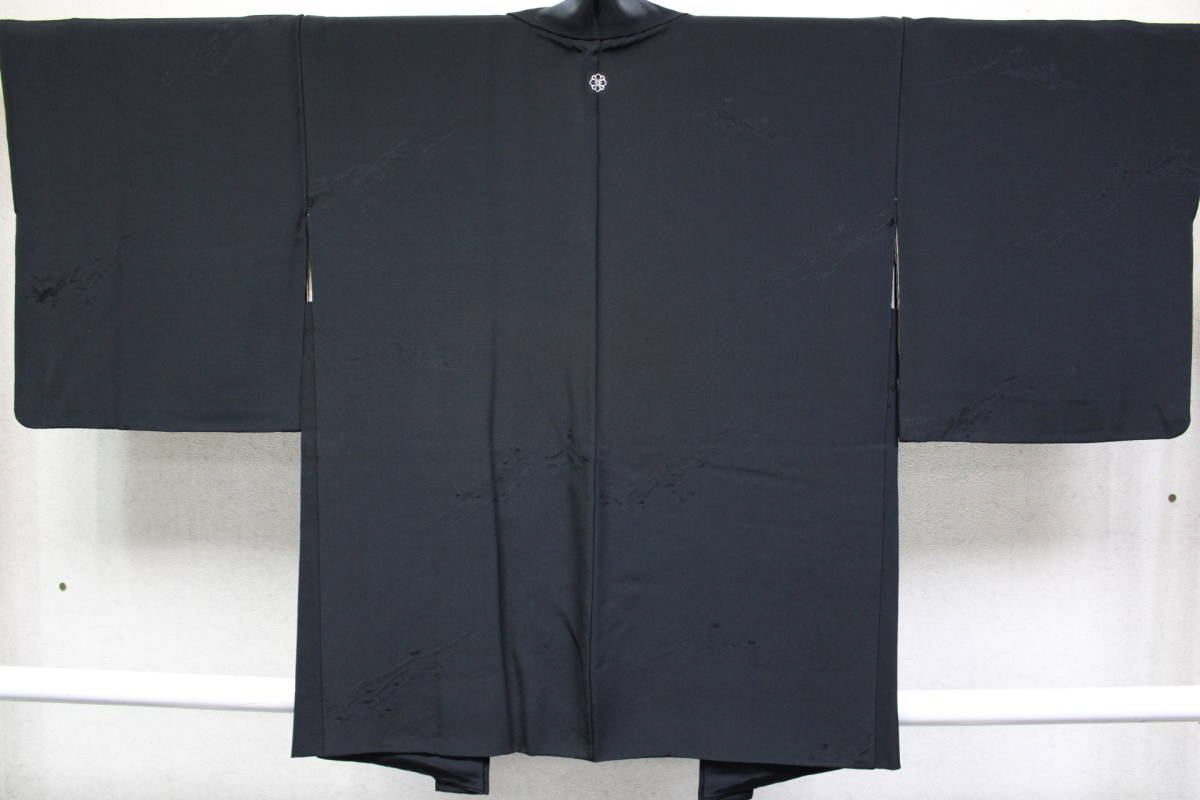 - きもの今昔5207 黒羽織コレクション 一つ紋入り「剣花角」高級正絹紋意匠 丘のシルエット柄織 羽織丈80cm