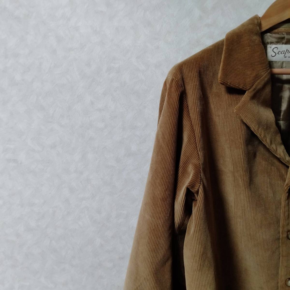 > SCAPA スキャパ コーデュロイ ジャケット アウター 無地 ロング丈 裏地あり ポケット フロントボタン ブラウン SSA52