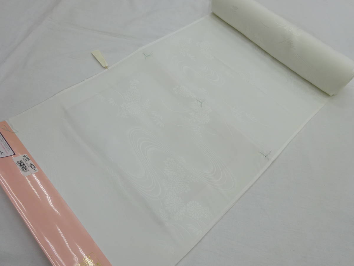 - 新品・正絹・反物★国内産・石川県小松ちりめん・白長襦袢★流水に菊の柄です