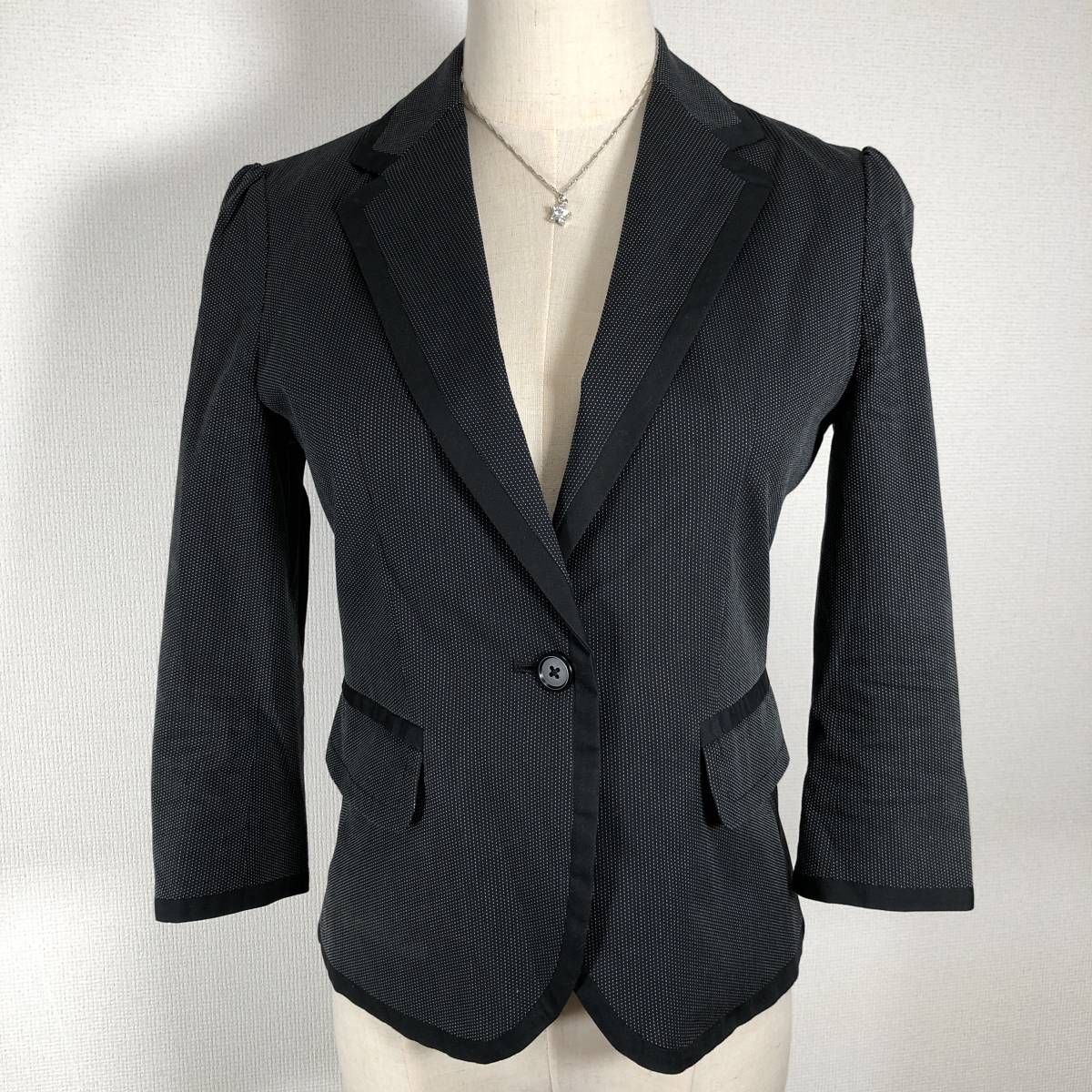 > WS0045 美品 THE SUIT COMPANY ザスーツカンパニー レディース ジャケット 七分袖 38 ブラック ドット コットン混 万能 リボン ビジネス