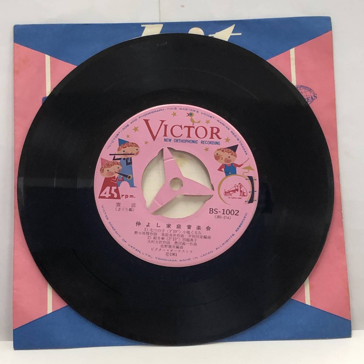 > [レコード] EP「仲よし家庭音楽会:七つの子 / 絵日傘 / どこかで春が / ひなまつりのうた」 ジャケット無し 45rpm ビクターレコード