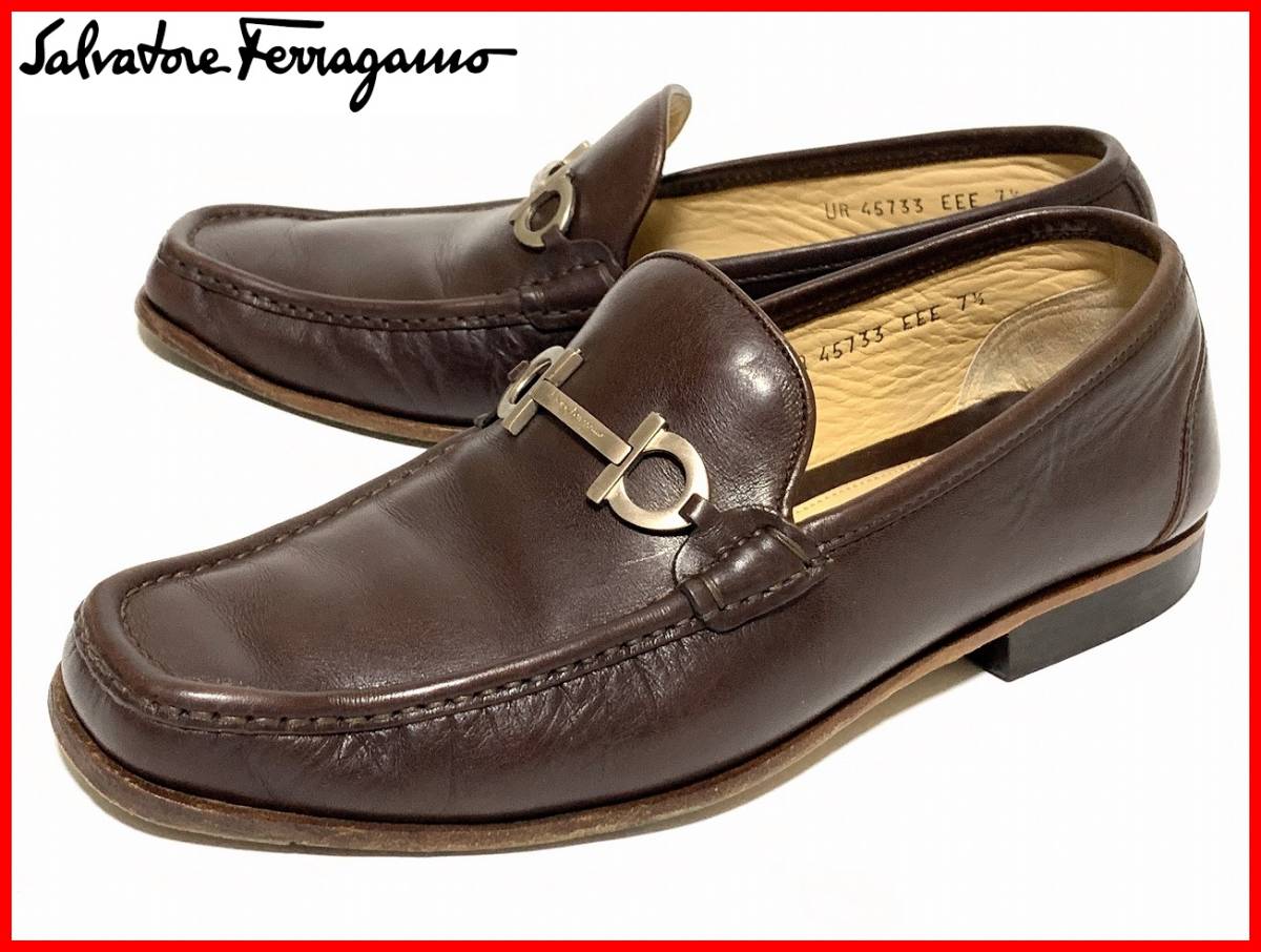 > 即決 Salvatore Ferragamo フェラガモ 7.5≒25.5cm ローファー レザー 茶 ブラウン メンズ jtu