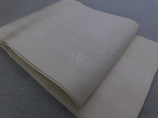 > 〔楽布〕P23890 オフホワイトの本筑博多名古屋帯 k