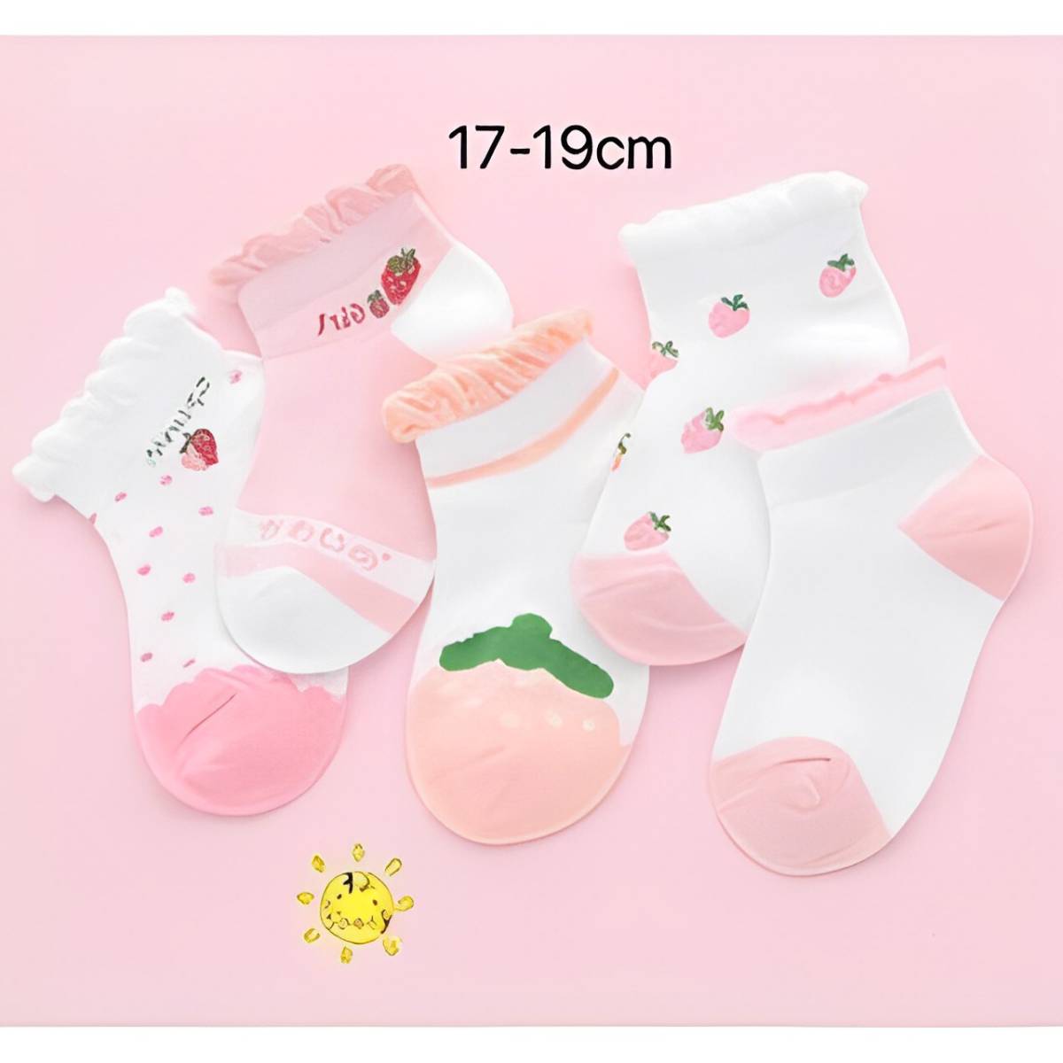- 0741L 可愛い いちご柄 キッズ靴下 子供ソックス(17-19) メッシュ