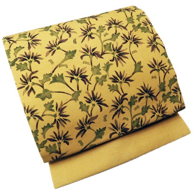 > 名古屋帯 なごや帯 中古 リサイクル 正絹 紬地 カジュアル 植物文様 楊梅色 多色 きもの北條 A879-17