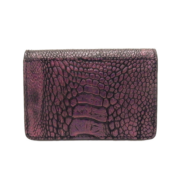 - 天然皮革 コインケース オーストレッグ革 赤紫/メタリック染め スナップボタン 小銭入れ 男女兼用 WL30-PU