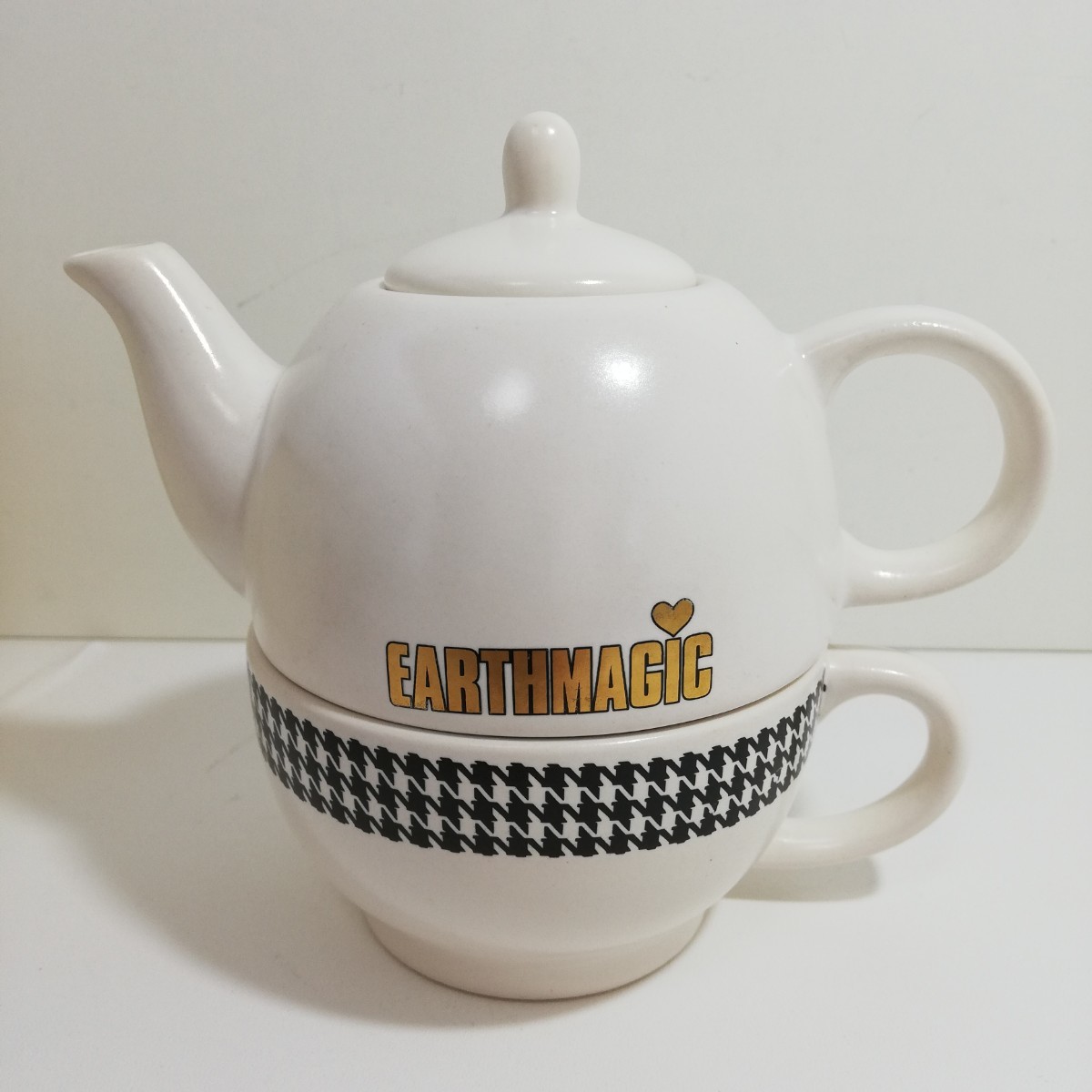 - EARTHMAGIC アースマジック お一人用 ティーポット&カップセット 未使用品 [茶器 二段 おひとり様 ポット カップ]