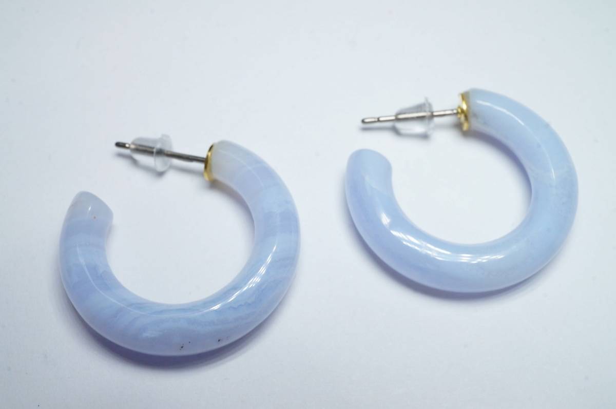 - 【特別即決価格!早い者勝ち!】極上ブルーレースアゲートオリジナルカット高透明度ピアス(ペア)5.2g