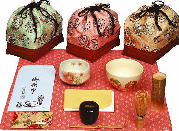 - 茶道具 野点籠(のだてかご)セット、 源氏籠セット、 【 ベージュ-右側の籠作品】 新品。