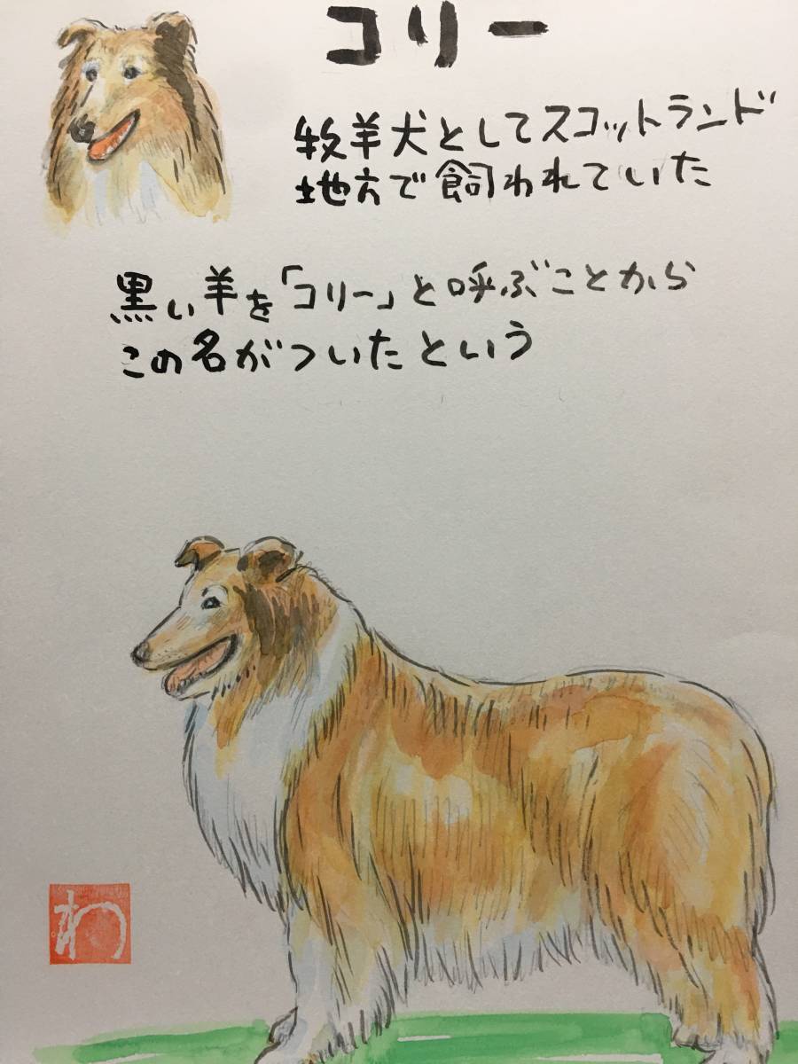 > 高橋わたる たかはしわたる 高橋亘 真作 漫画家 水彩画 肉筆画 風景画 動物画 絵画 絵画 絵 直筆 デッサン イラスト画 犬 唄 歌 詩 コリー