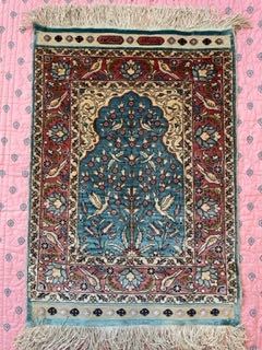 > 【希少】未使用 新品 最高級ペルシャ絨毯 名作 ヘレケ工房 サイン入り シルク100% 手織り 絹 740mm×420mm 未使用