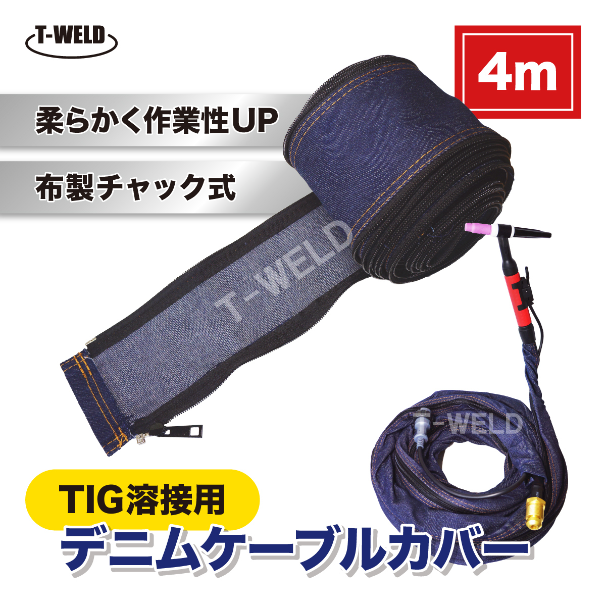- TIG 半自動 溶接 トーチ デニム ケーブルカバー 4m 1本