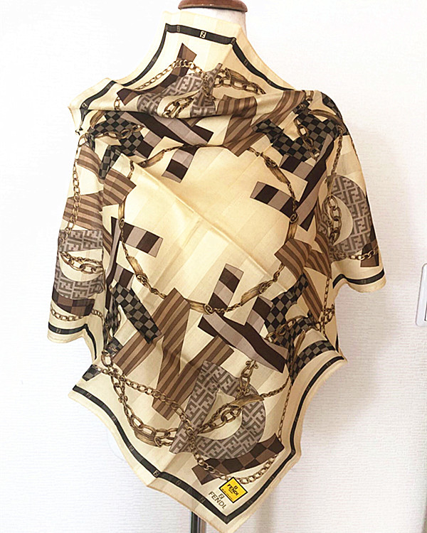 - 新品 フェンディ FENDI◆レア柄★大判ハンカチミニスカーフ★膝掛け 58×58㎝ (0621E62350)