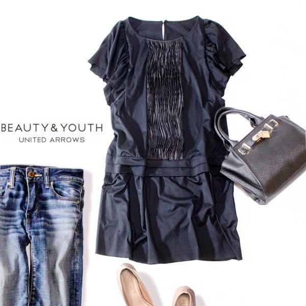 > ☆☆ 美品 ユナイテッドアローズ BEAUTY & YOUTH ☆☆ 大人可愛い シワプリーツ コットンストレッチ ワンピース M 春 夏 23D06