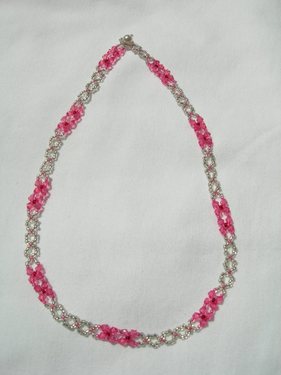 - ビーズ ネックレス(ピンク) ハンドメイド 新品