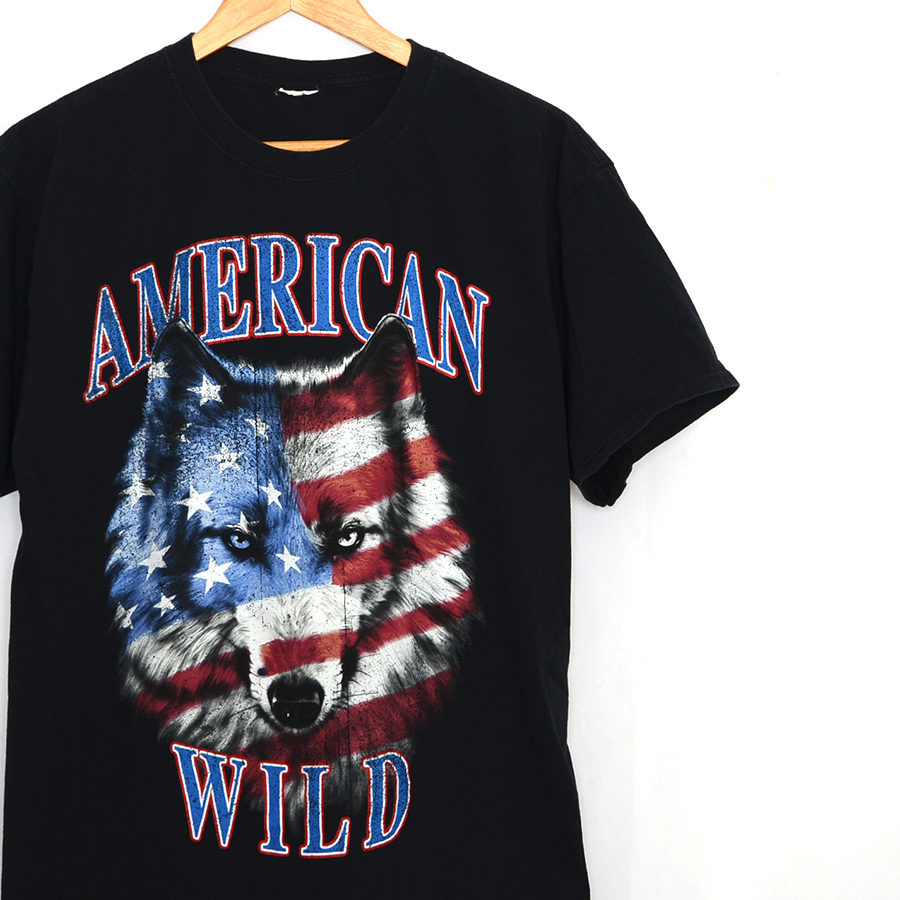- GS1008 アメリカンワイルド Tシャツ L 肩幅52 AMERICAN WILD アニマルプリント ウルフ 星条旗 メール便可 xq