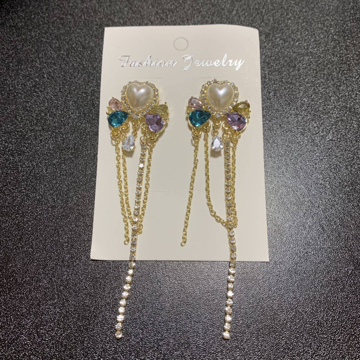 - ハートフェイクパール ビジュー チェーン ピアス ゴールド