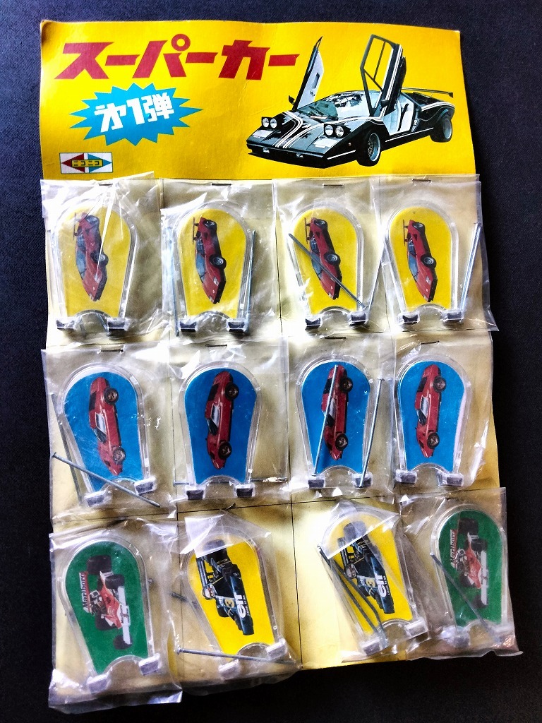 > '70s 当時物 ブラック カウンタック !! スーパーカーあそび マスコット 12付き 台紙セット!☆ ランボルギーニ イオタ タイレル P34 6輪