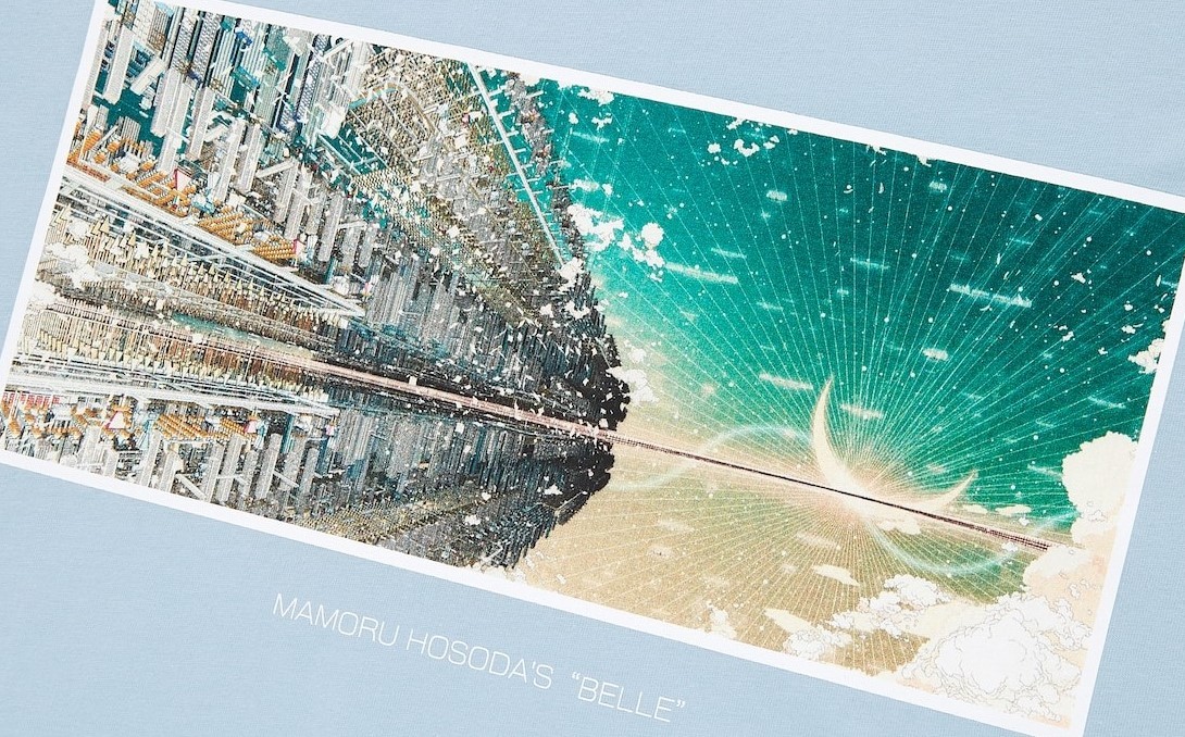- 2021 UNIQLO ユニクロ UT 細田守『竜とそばかすの姫』Tシャツ 丸首 半袖 青 前プリント L・身幅約52.5cm※未試着品/未使用品/商品タグ付き