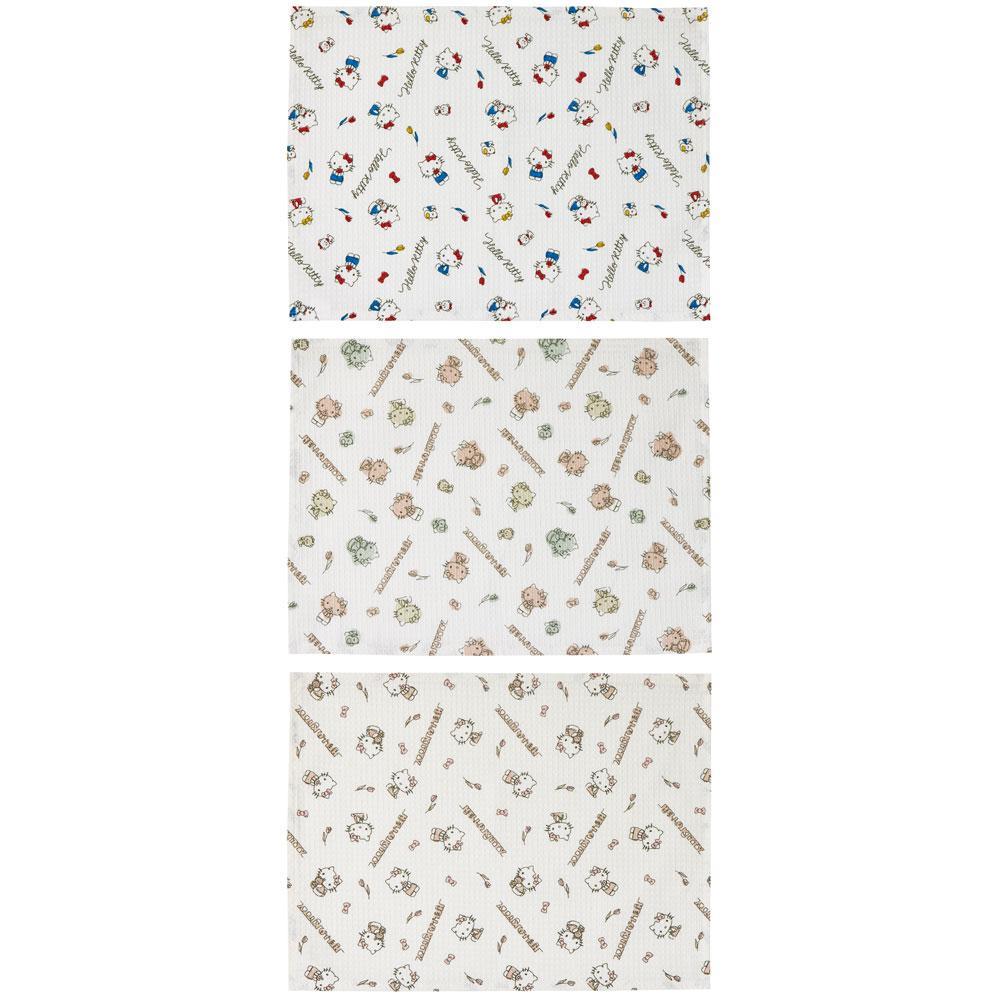- ハローキティ ワッフル生地ふきん 3枚 ラインデザイン スケーター