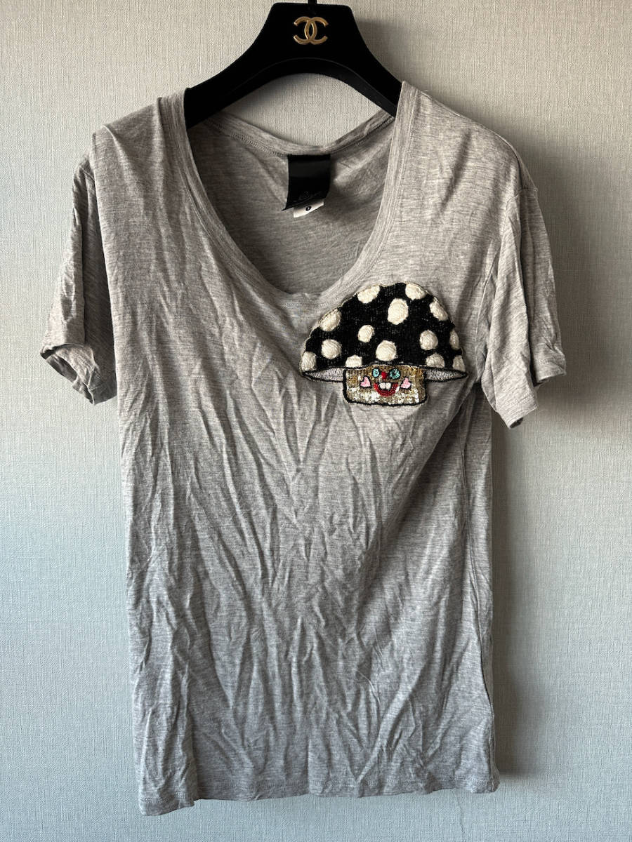 - 数回着用 Lin ArtProject リンアートプロジェクト Uネック キノコスパンコール サイズ1 サイズS相当 定価2万程 メンズ レディース