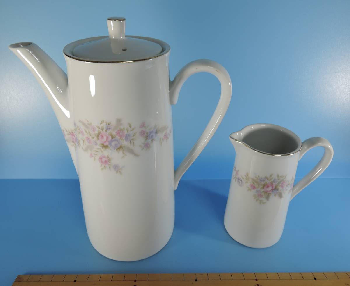 > ☆Z31 昭和レトロ■YAMAKA Chorus ポット&ミルクピッチャー 陶器製 花柄:薔薇/バラ/ローズ■山加/ヤマカ